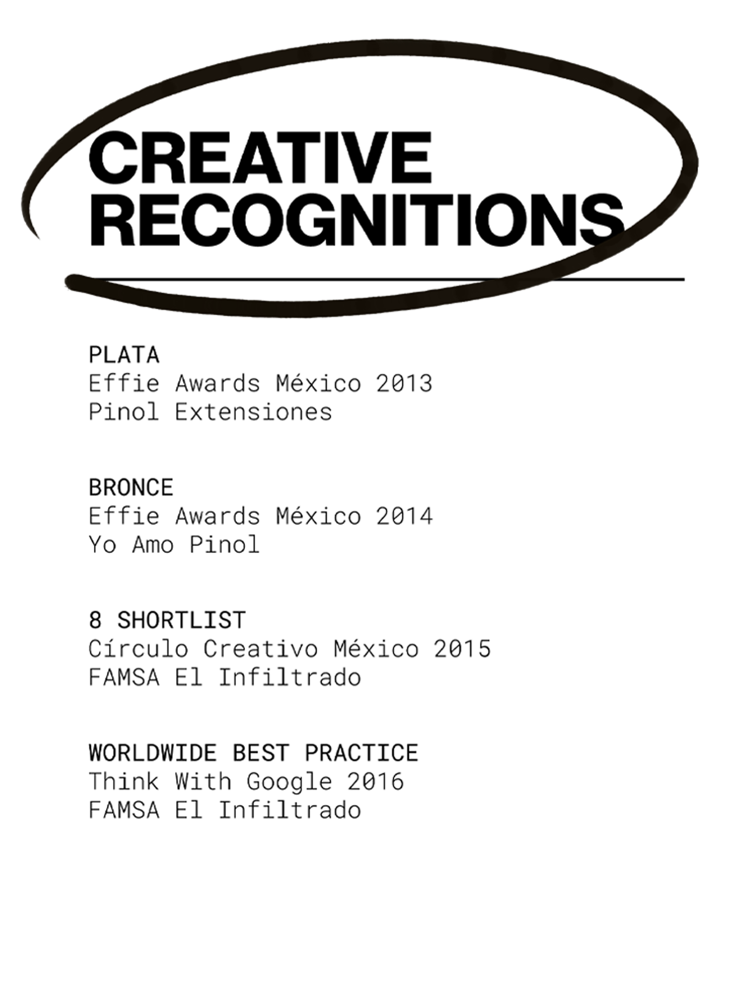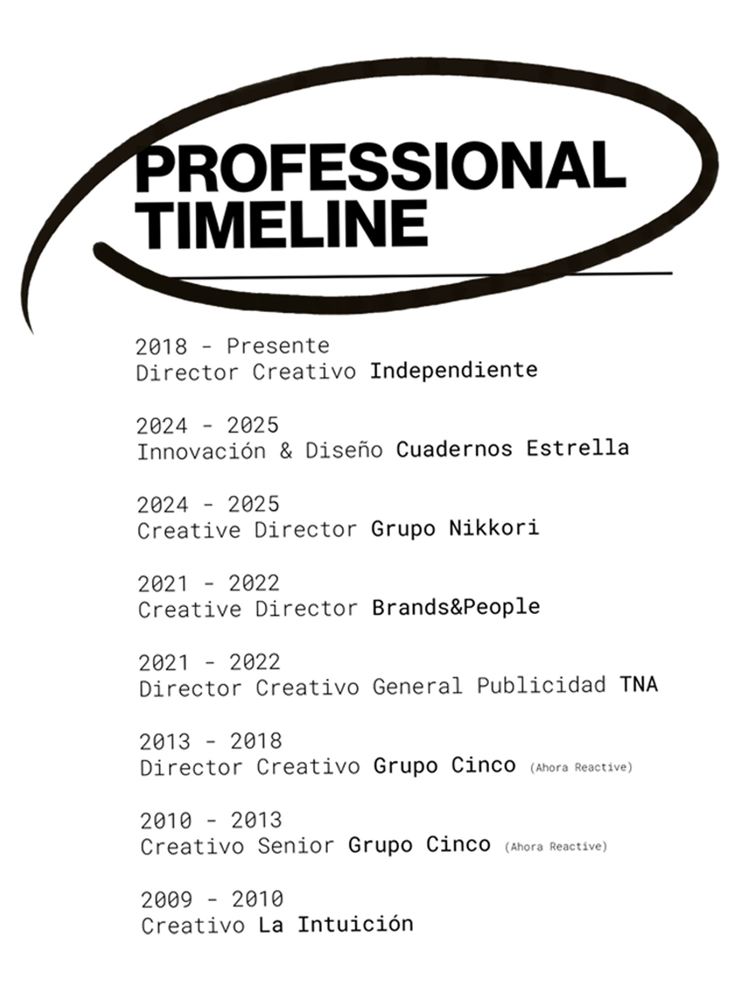 Director Creativo para marcas nacionales e internacionales de consumo masivo y especializado. Con capacidad para interpretar y traducir estrategias de mercadotecnia en ideas de comunicación. Líder en proyectos clave con objetivos de crecimiento en posicionamiento y negocio. Guía y mediador en procesos internos de "brainstorming" y coaching para el cumplimiento de objetivos y calidad de propuestas. Líder y miembro de equipos responsables de transformar negocios en marcas, estableciendo objetivos claros, simples, medibles y sostenibles.